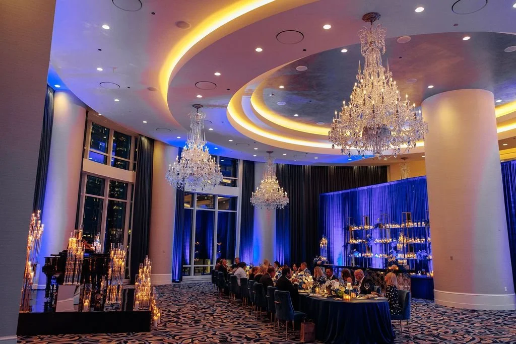 Massive Swarovski crystal chandeliers hung from the ceiling, a pianist and violinist played the entire dinner, surrounded by candles and against a backdrop of the Chicago skyline lit up through the floor to celling windows. An exciting seven-course dinner was served by gracious servers in white coats, plating and removing in sync with every course. I had to pinch myself throughout the evening—everything about it felt so rare and special.